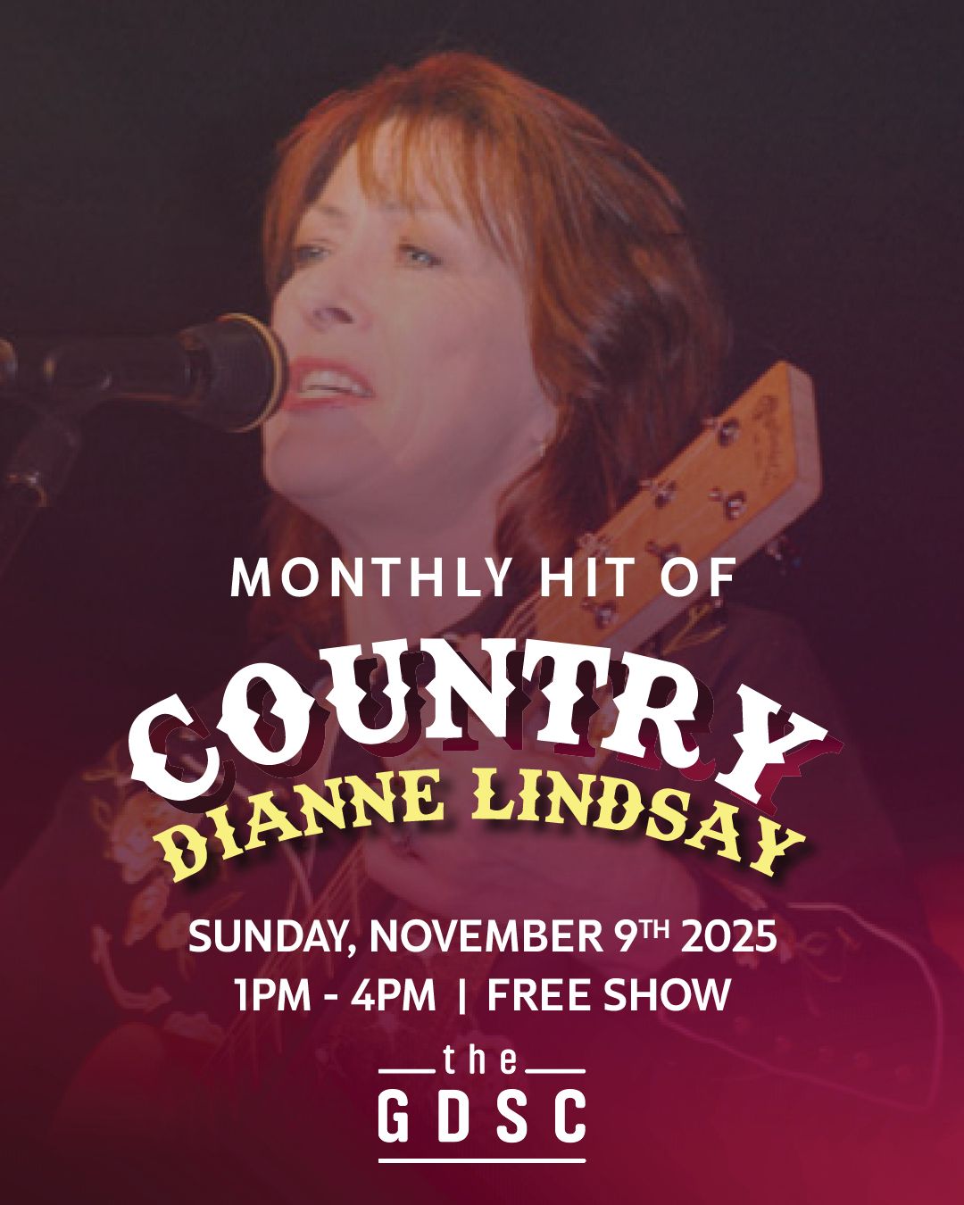 With her heartfelt songs, deep connection to the genre’s roots, and lifelong dedication to promoting true Australian country, Dianne Lindsay is a performer not to be missed so join us at the GDSC for an afternoon steeped in authentic bush ballads and traditional Australian country music at its very best.