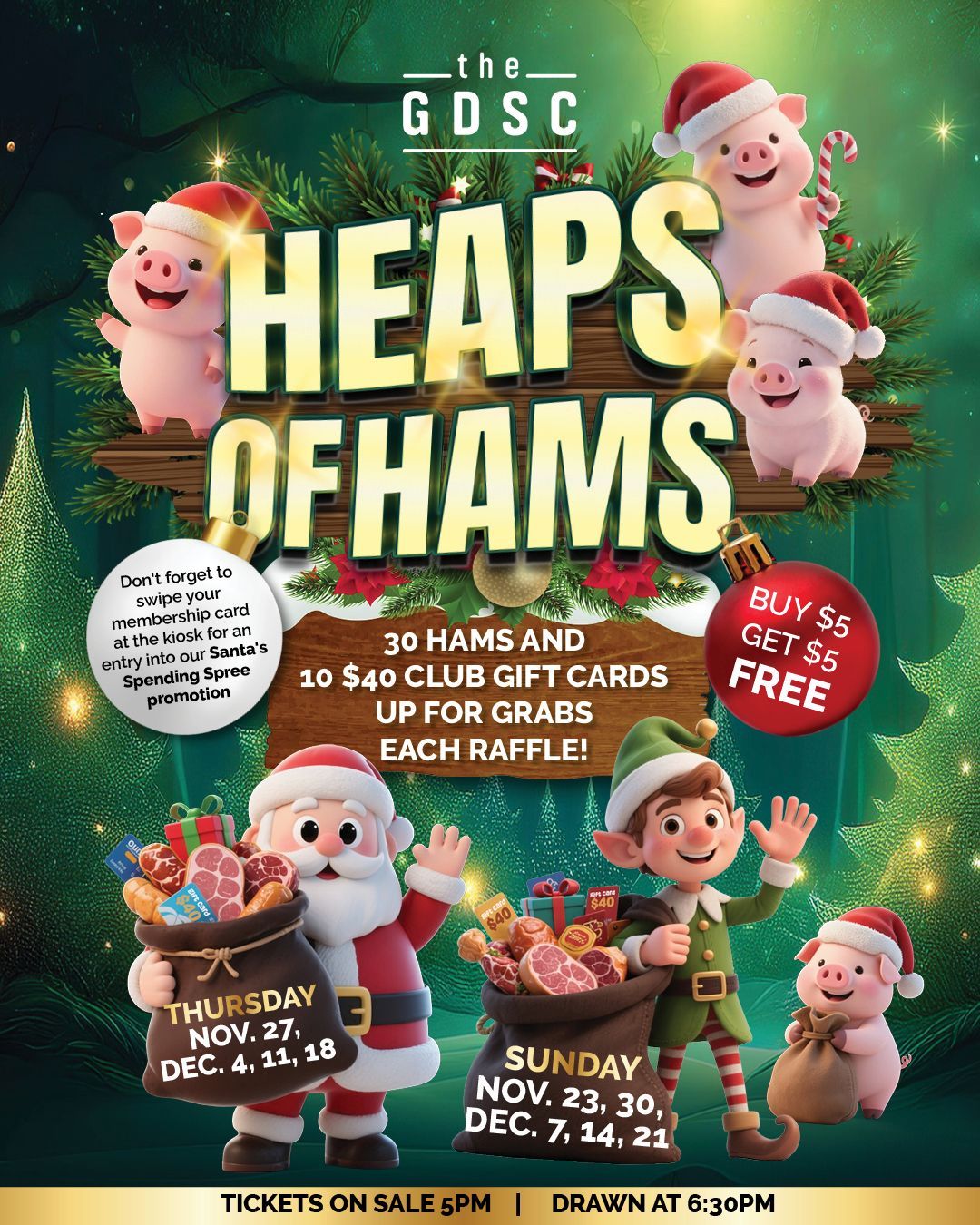 PLUS, at each HEAPS OF HAMS RAFFLE, one lucky member will receive 3 bonus entries.