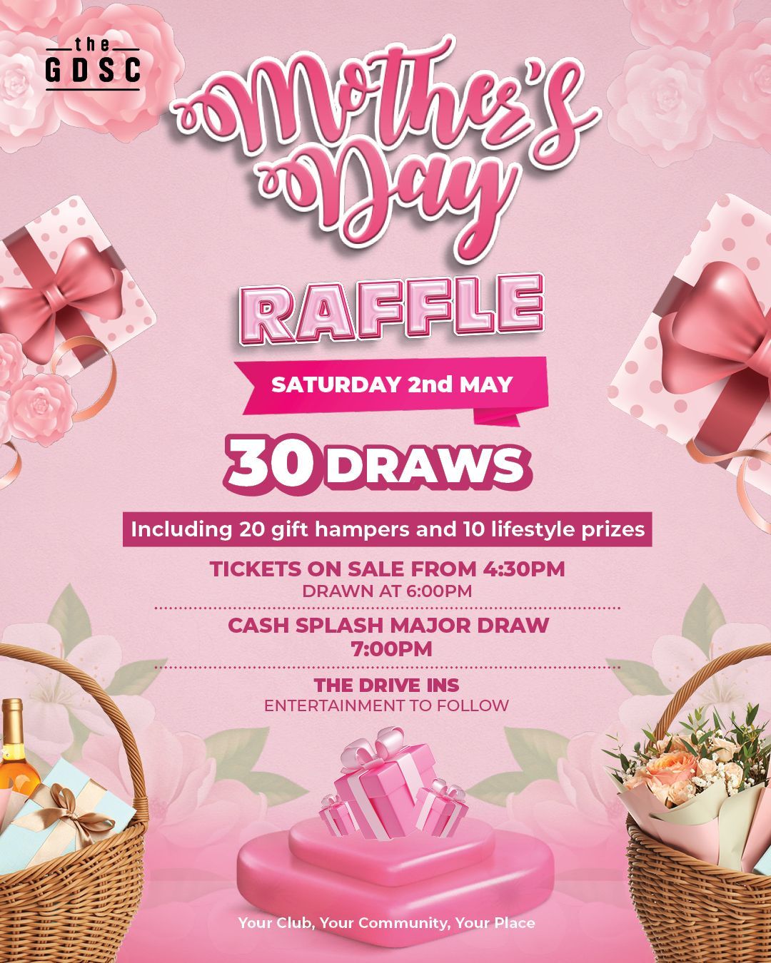 Celebrate Mother’s Day at the GDSC with our Mother’s Day Raffle, packed with fantastic prizes and a great night of entertainment.